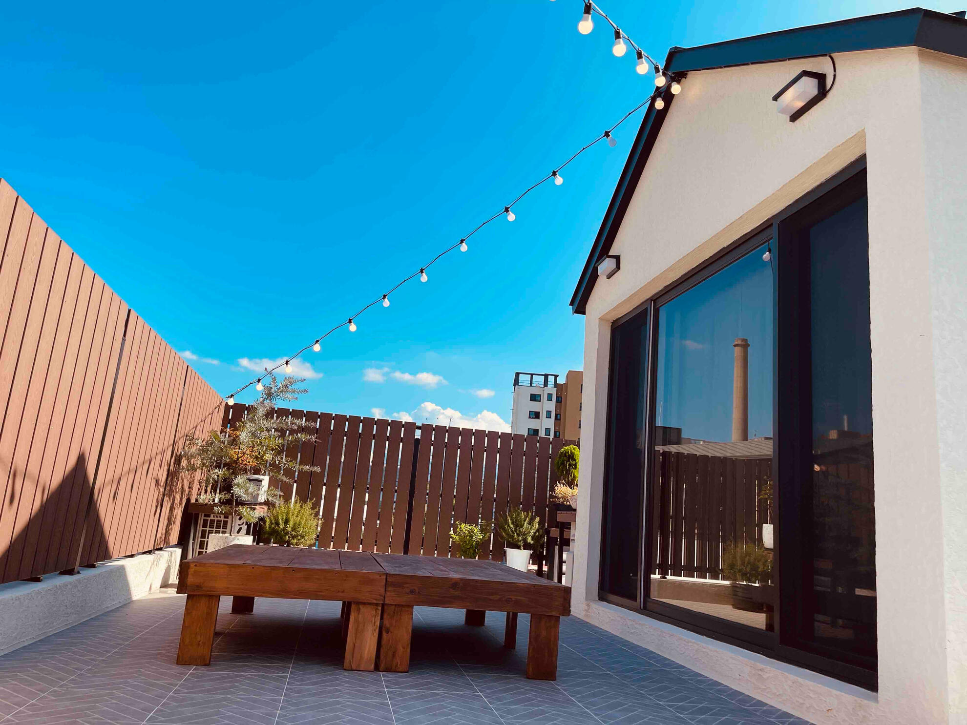 21-pyeong third-floor terrace with café lights – perfect for relaxing day or night